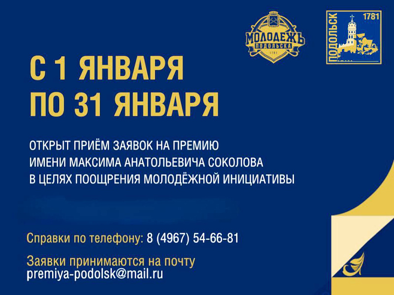 Общество Комитет по делам молодежи администрации округа проводит конкурс на соискание премии имени Максима Соколова.