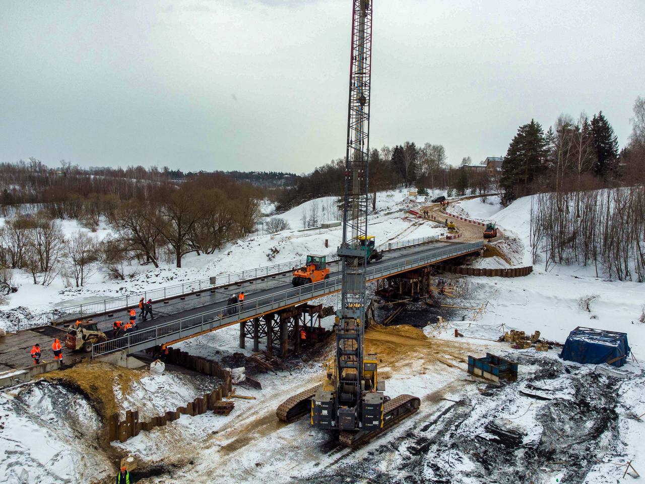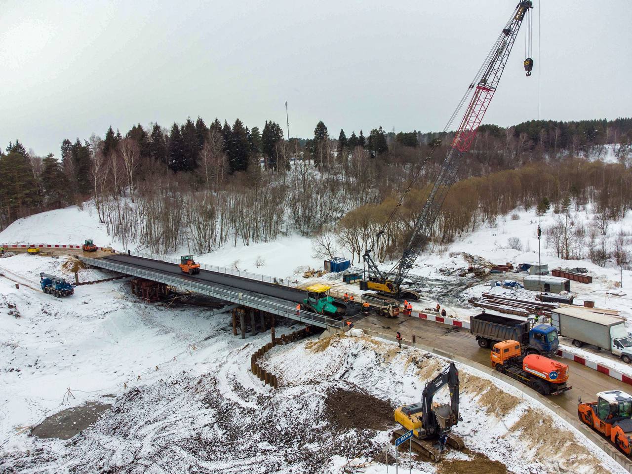 Временный мост в деревне Кутьино