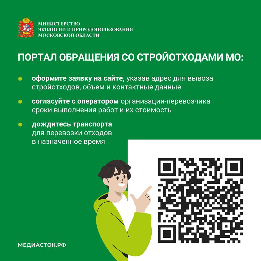 Министерством экологии и природопользования Московской области на региональном портале государственных и муниципальных услуг запущен сервис по вывозу строительных отходов.