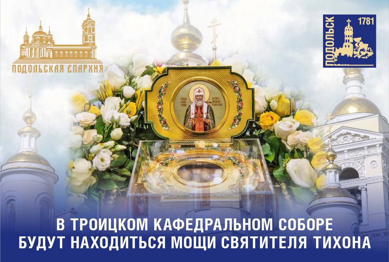 В 9:00 в Троицком кафедральном соборе Подольска состоится Божественная литургия, которую возглавит архиепископ Подольский и Люберецкий Аксий. По окончании литургии владыка совершит молебен перед мощами святителя Тихона.