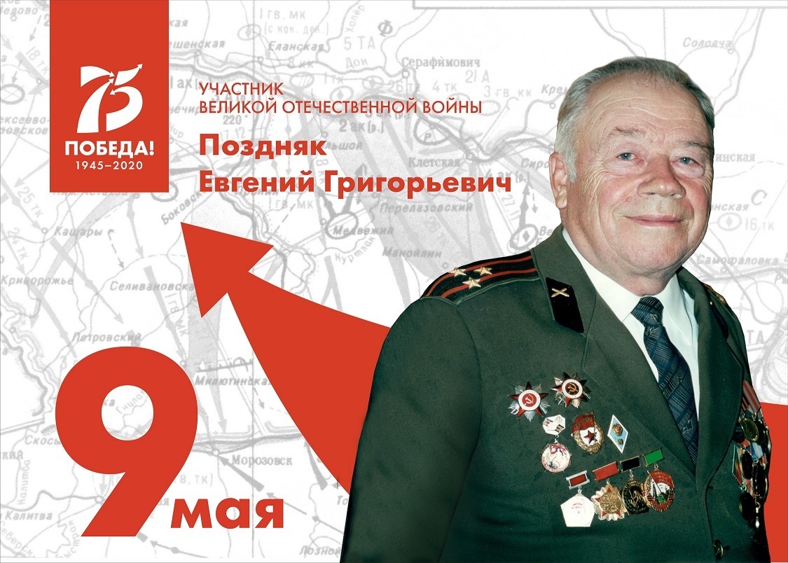 «Накануне юбилея Победы Евгений Григорьевич Поздняк отметил своё 95-летие. Несмотря на почтенный возраст, он сегодня всё так же энергичен и в курсе всех событий. А еще может наизусть и подолгу читать стихи, как собственные, так и своего любимого Сергея Есенина», — написал на своей странице в социальной сети «ВКонтакте» глава Городского округа Подольск Николай Пестов. Он отметил, что свое первое стихотворение Евгений Григорьевич написал зимой 1945-го, когда узнал, что его мать и сестры, находившиеся на оккупированной территории, остались живы. Поэтические строки тогда опубликовали во фронтовой газете.