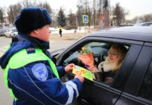 В Подольске Госавтоинспекторы и общественники провели акцию «Цветы для автоледи»