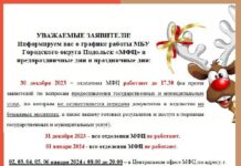 Режим работы МФЦ г. о. Подольск в выходные и праздничные дни