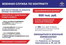Безопасность Вступившим в ряды защитников Родины положены денежное довольствие и социальные гарантии.Дополнительно предусмотрены:единовременная выплата - 600 тысяч рублей;статус ветерана боевых действий и соответствующие...