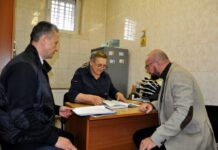 Правоохранительные органы Представители Общественного совета при УМВД России по г.о. Подольск, настоятель Ильинского храма села Лемешово протоиерей Петр  Дынников и отец Героя России Александра Монетова — Геннадий...