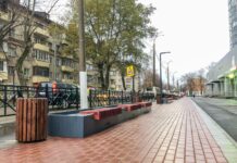 На пешеходной зоне от станции до квартала «Зингер» установили 15 лавочек с цветочницами