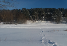 Толщина льда на реке Пахре 15 февраля