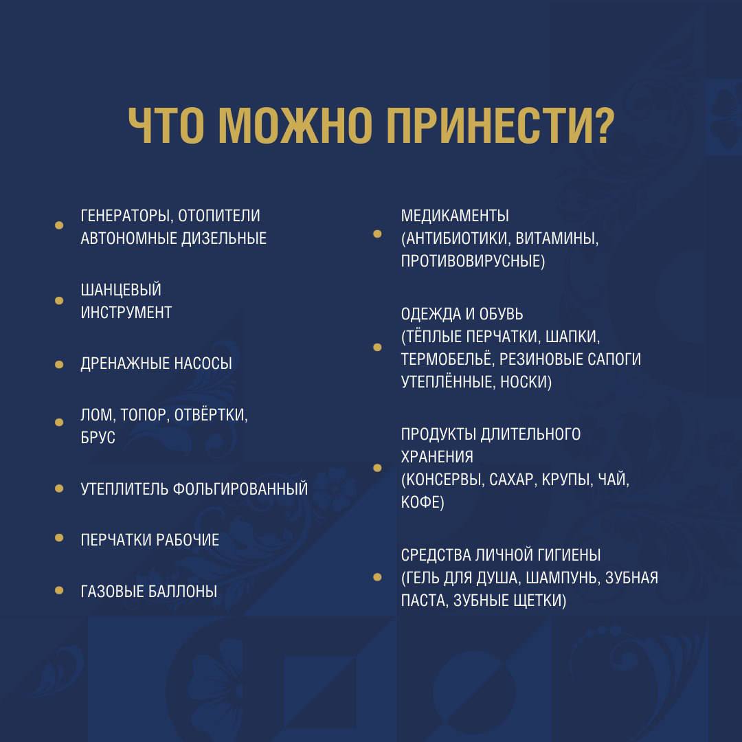 Особая потребность в бензопилах, отопителях, кабелях, спальных мешках, стройматериалах и средствах гигиены. Подробный список по ссылке.
