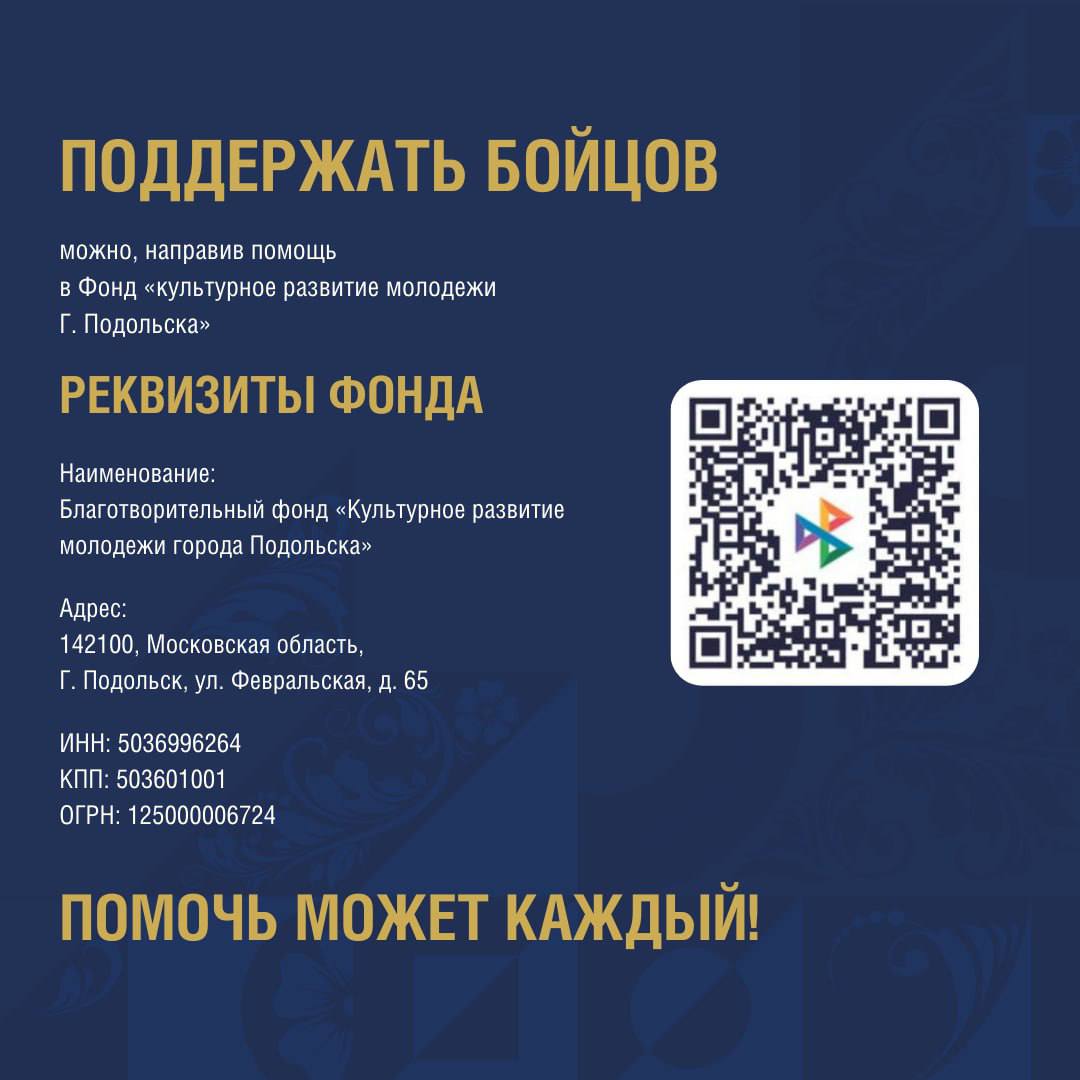 Также можно оказать финансовую помощь через благотворительный фонд «Культурное развитие молодежи г. Подольска».