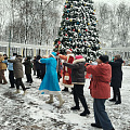 Группа активистов нарядилась Дедом Морозом, Снегурочкой, Красной Шапочкой, Лисой Алисой, Котом Базилио и зайчиками. Пели песни, читали стихотворения, танцевали под наряженной елочкой. Заряжали позитивом не только себя, но и прохожих. Снежная погода не помешала.
