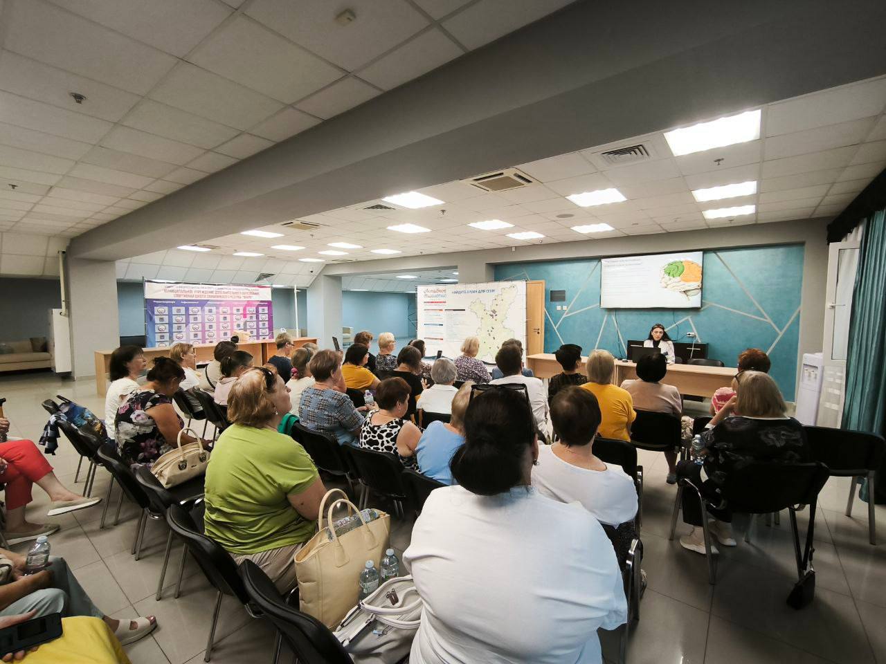 Мероприятие собрало более 30 человек — женщин старше 55 лет и мужчин старше 60 лет. Специалисты провели комплексный обзор важных аспектов поддержания здоровья и качества жизни. Рассказали про средиземноморскую диету — систему питания, основанную на употреблении овощей и фруктов, свежей зелени и цельнозерновых продуктов, посоветовали включить в рацион больше клетчатки и сложных углеводов и исключить продукты с высоким содержанием животных жиров, выпечки и сладостей. Обсудили вопросы ментального здоровья, способы его поддержания и профилактику когнитивных нарушений.