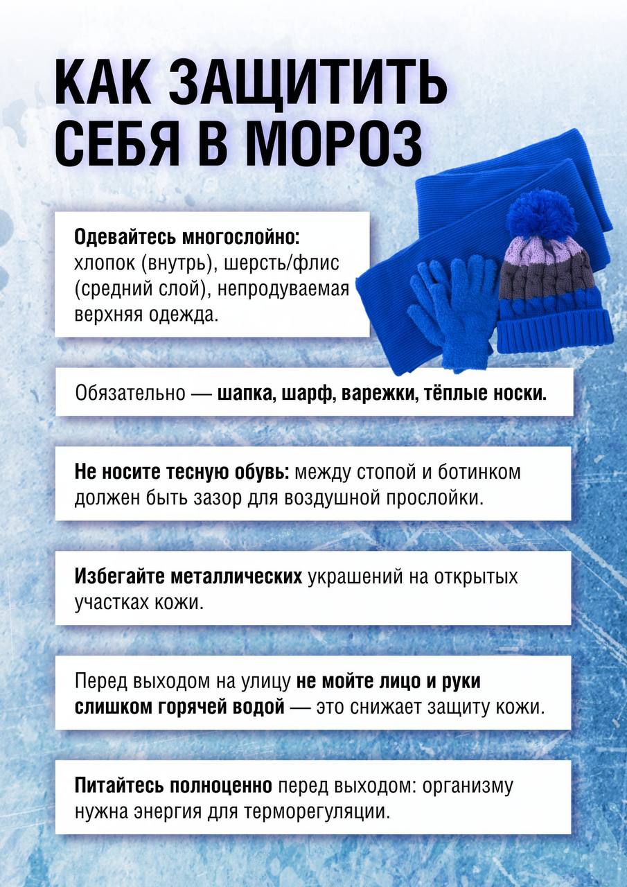 Мороз — серьезный стресс для организма. Даже кратковременное воздействие низких температур может привести к обморожению и переохлаждению. Знание простых правил поможет сохранить здоровье и избежать опасных ситуаций.