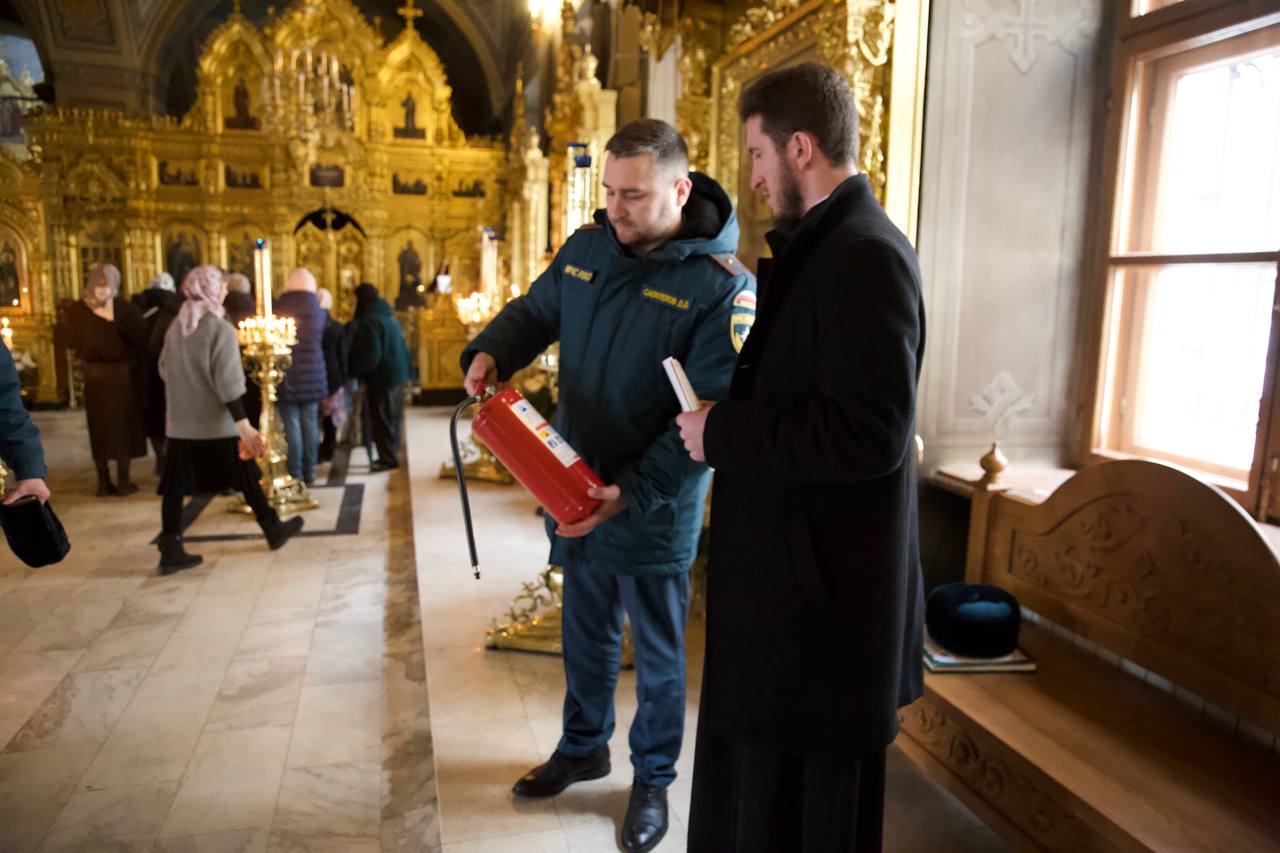 Очередная такая встреча состоялась с священнослужителями Троицкого кафедрального собора. Особое внимание при подготовке к массовым богослужениям уделяется вопросам пожарной безопасности.