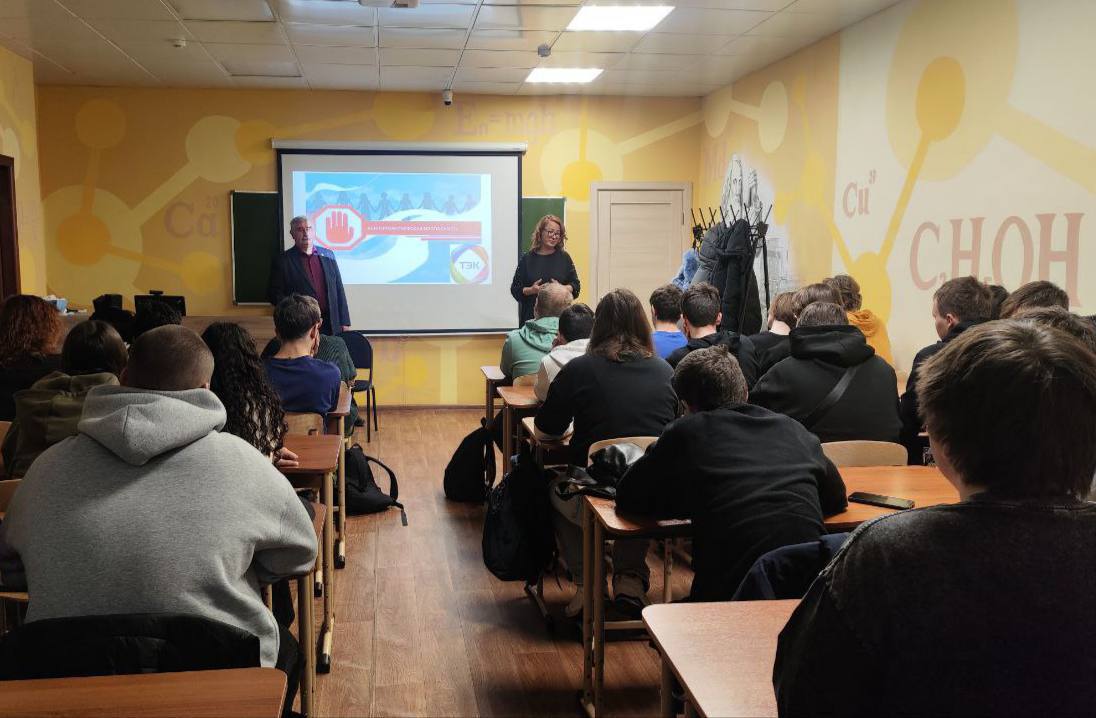 На познавательной встрече «Безопасность вокруг нас» перед 30 учащимися колледжа выступили представитель комитета по делам молодежи и главный эксперт управления безопасности администрации городского округа Подольск.