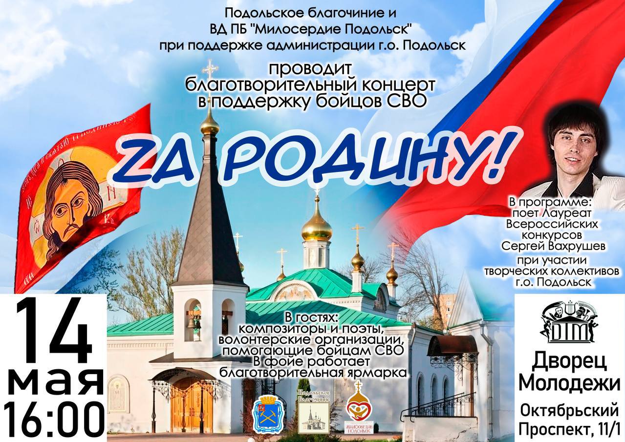 Подольское благочиние и волонтерское движение “Милосердие Подольск” организуют благотворительный концерт, на котором для всех желающих споёт лауреат всероссийский конкурсов Сергей Вахрушев, свои творческие номера покажут коллективы городского округа и волонтёры.