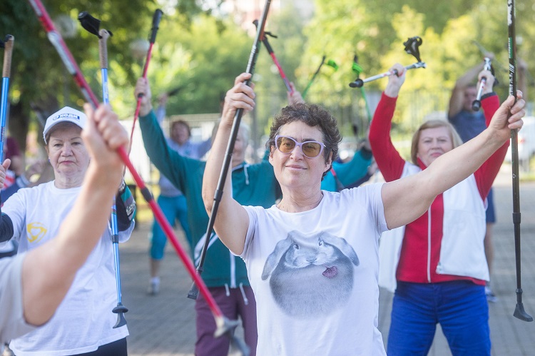 В понедельник, 17 августа, на очередную тренировку по скандинавской ходьбе в физкультурно-спортивный комплекс «Заречье», расположенный в микрорайоне Климовск Городского округа Подольск, пришло более 40 жителей старшего поколения. Тренировка проходила в рамках губернаторской программы «Активное долголетие». Напомним, что программа стартовала летом 2019 года и практически сразу стала популярной в Подмосковье, в том числе и в Городском округе Подольск.