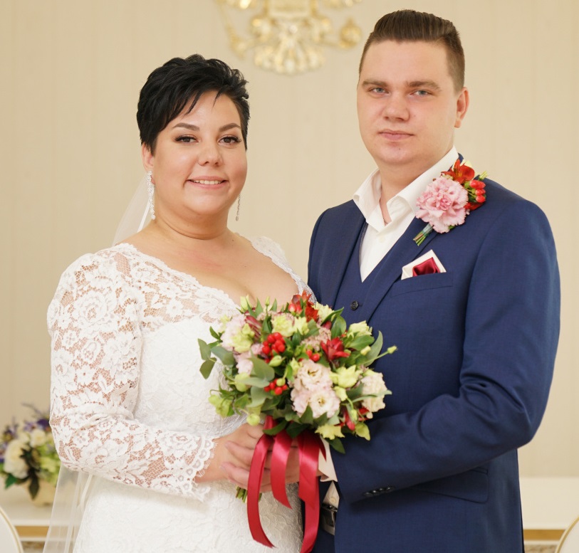 Сотрудники Подольского городского отдела ЗАГС поздравили молодожёнов со знаменательным событием в жизни и вручили им поздравительный адрес Губернатора Московской области Андрея Воробьева.