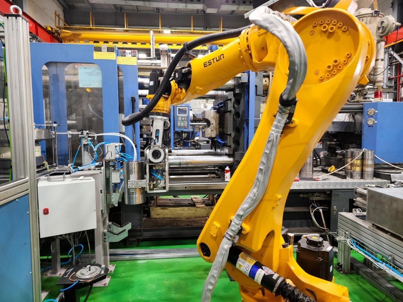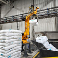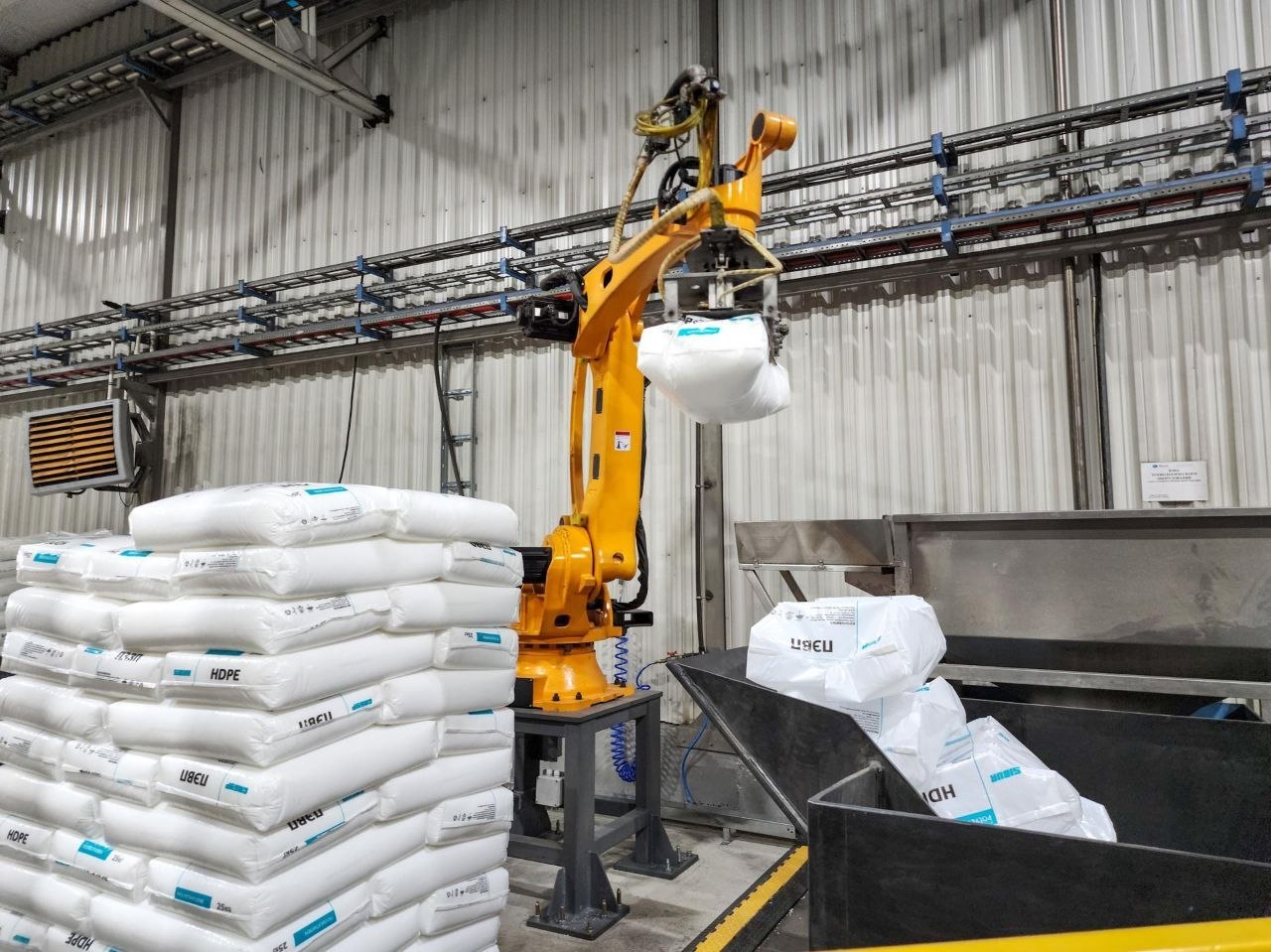 Роботизированный комплекс на участке растарки сырья позволил увеличить скорость выполнения работы в 2,5 раза. Робот распаковывает мешки с полимерным сырьем и высыпает его в специальный контейнер для дальнейшего производства труб. За час он может загрузить до четырех тонн гранул. Такого объема более чем достаточно для производственных линий цеха гладких труб.