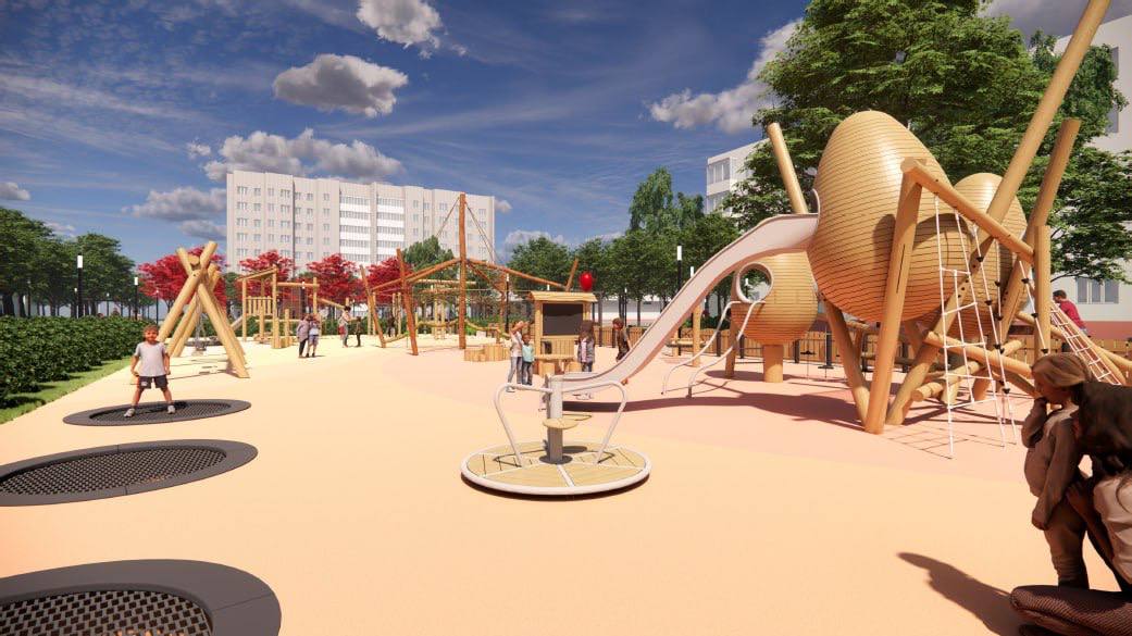 В данный момент ведётся устройство основания под детскую площадку, рабочие приступают к плиточному мощению. А уже в конце июля должна начаться установка игровых элементов, скамеек, урн, локальных мест для отдыха с теневыми навесами. Обратил внимание подрядчиков на необходимость своевременного демонтажа старых столбов освещения.