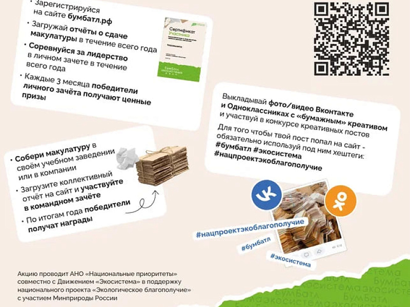 Национальные проекты Акция проводится Всероссийским экологическим общественным движением «Экосистема» при поддержке Министерства природных ресурсов и экологии Российской Федерации 10 по 30 ноября 2025 года.