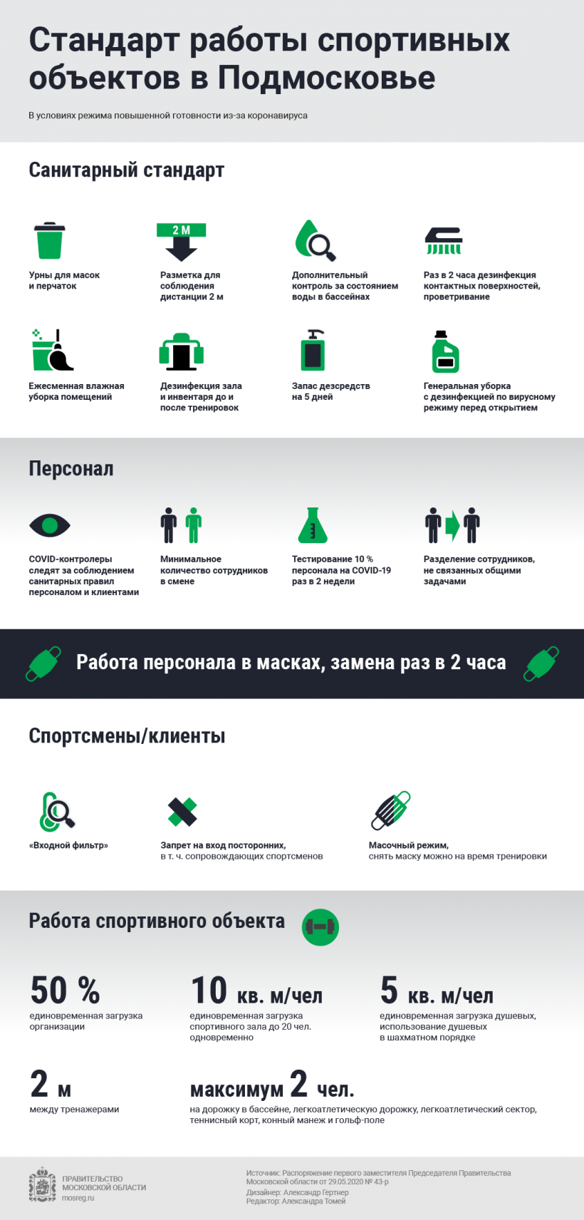 МЕДИАЦЕНТР — 8 июля, ПОДОЛЬСК — Очередной этап снятия ограничений, введенных из пандемии коронавируса, прошел 1 июля. В этот день в Подмосковье возобновили работу фитнес-клубы и другие спортивные объекты. Чтобы свести риск заражения к минимуму, сотрудники и посетители обязаны соблюдать особые противоэпидемические меры, об этом сообщили на сайте Правительства МО.