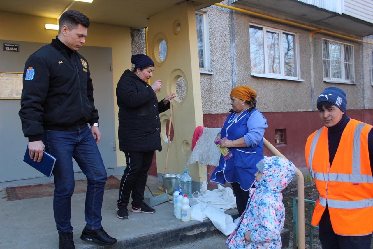 – Пообщавшись с жителями, проверив подъезды домов лично, а также сверив время уборки по графикам, размещённых на первых этажах, могу сделать вывод, что работы по дезинфекции проводятся своевременно, недостатков выявлено не было, – сказал Иван Литвяков.