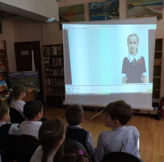 Особый интерес у ребят вызвало выступление Софии Кочетковой. Она рассказала о своем прадеде – участнике Великой Отечественной войны Михаиле Михайловиче Кочеткове. София показала одноклассникам его боевые и трудовые награды. А другая ученица – Настя Герасимова недавно записала в библиотеке № 25 видеоролик о прапрадедушке в рамках акции «Про Героя». Его также показали в рамках классного часа.