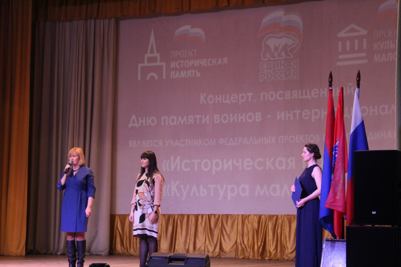 Концерт, посвященный Дню памяти воинов-интернационалистов и Дню защитника Отечества, прошел в Доме культуры «Металлург» микрорайона Львовский в пятницу, 14 февраля, об этом сообщили в Комитете по культуре и туризму администрации Городского округа Подольск. Мероприятие организовано в рамках реализации проектов «Историческая память» и «Культура малой родины» партии «Единая Россия».