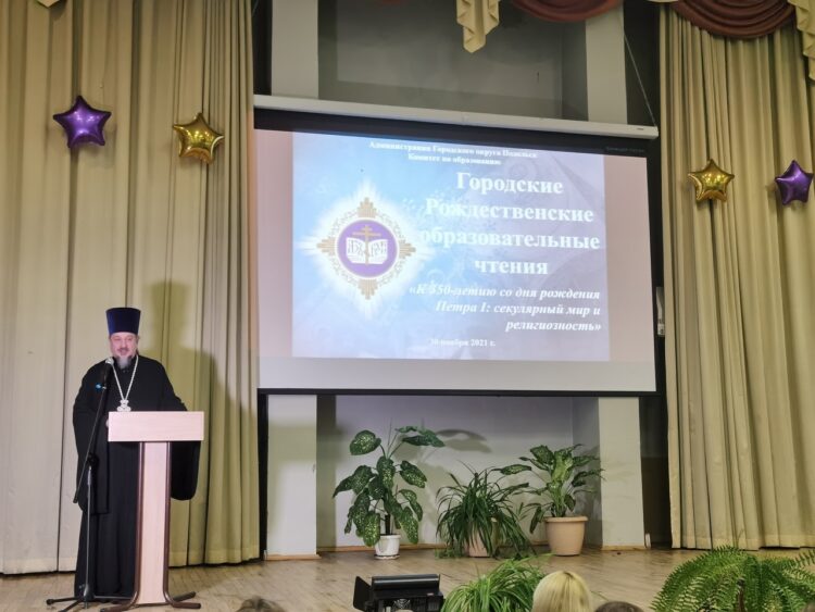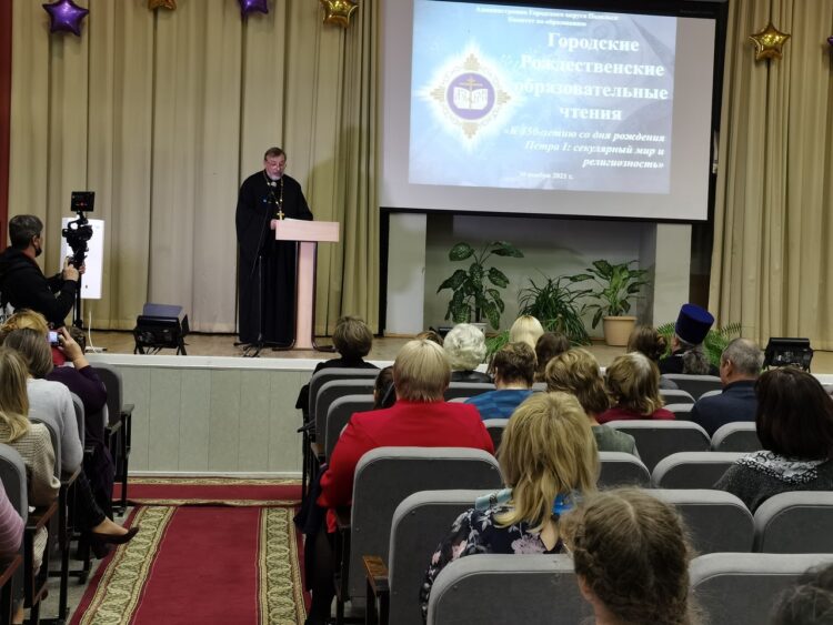 Во вторник, 30 ноября в рамках XIX Московских областных Рождественских образовательных чтений «350-летию со дня рождения Петра I: секулярный мир и религиозность» в г. Подольске в Лицее № 26 состоялась совместная конференция Подольского благочиния с педагогами и школьниками г. Подольска. В мероприятии приняли участие и.о. председателя Комитета по образованию Администрации г.о. Подольск Киселева Г.М и благочинный Подольского округа протоиерей Олег Сердцев. В актовом зале Лицея были представлены творческие работы детей, посвященных Рождеству Христову и теме правления Петра Великого. В начале работы конференции с вступительным словом к присутствующим обратилась Киселева Галина Михйловна.