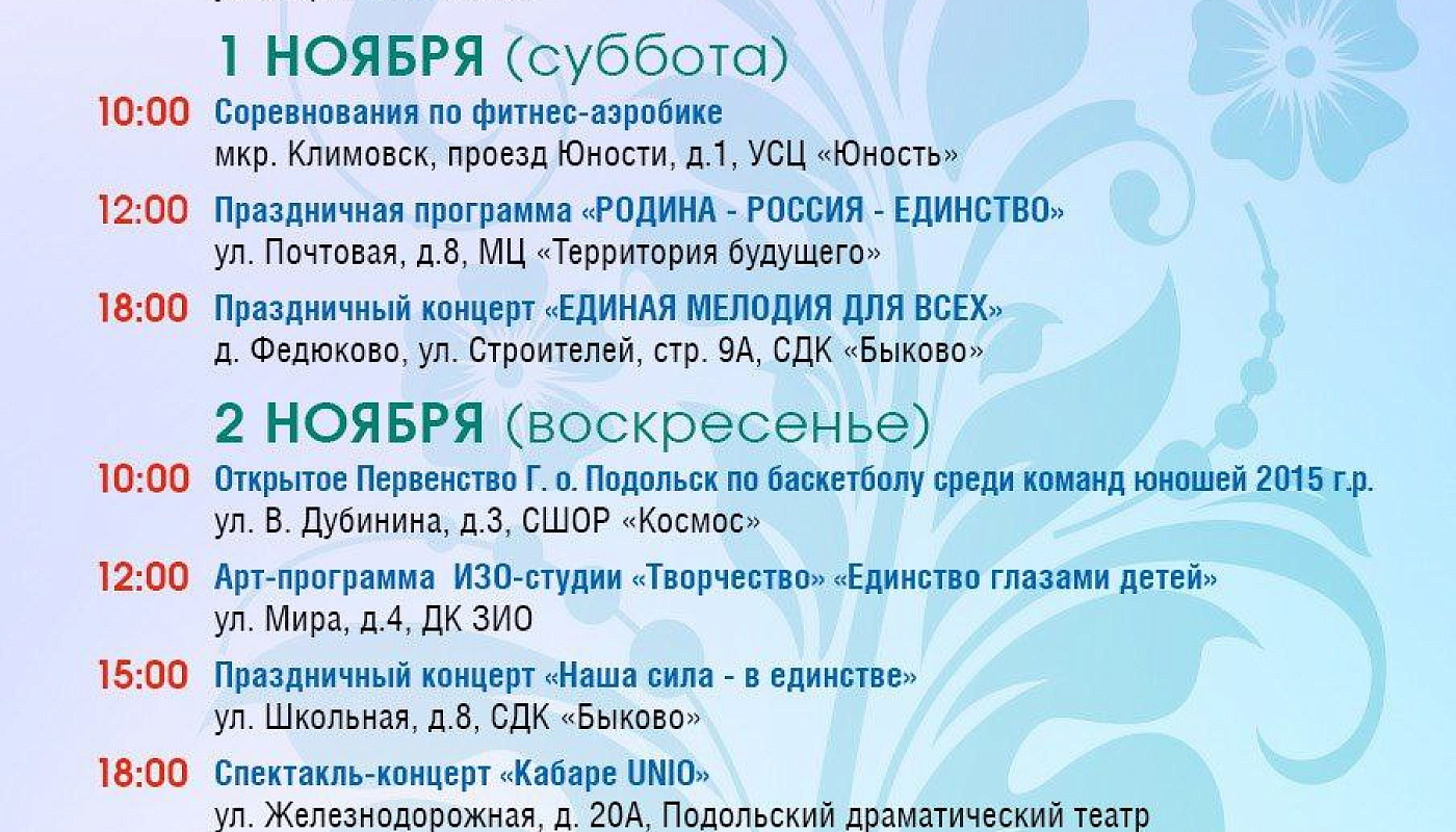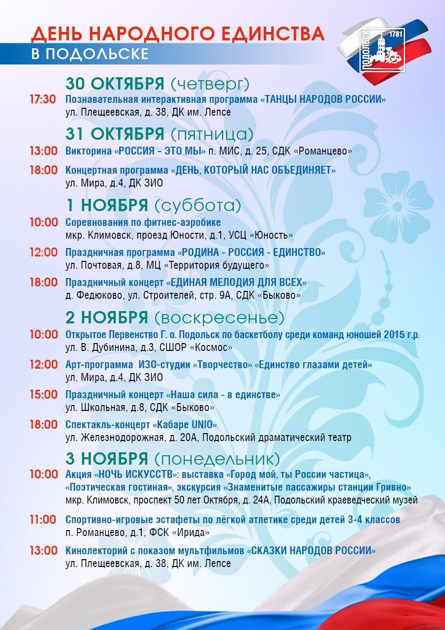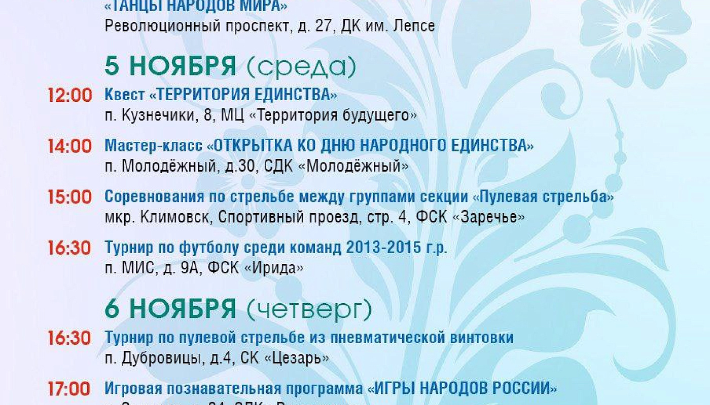 С 30 октября и всю неделю на городских площадках зрителей ждут концерты, мастер-классы, соревнования, кинопоказы, турниры, выставки и отличное настроение.