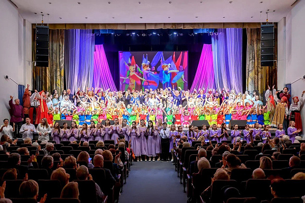 Завершился праздничный концерт исполнением гимна дворца, написанного специально к юбилею, - на сцену вышли все участники концерта.