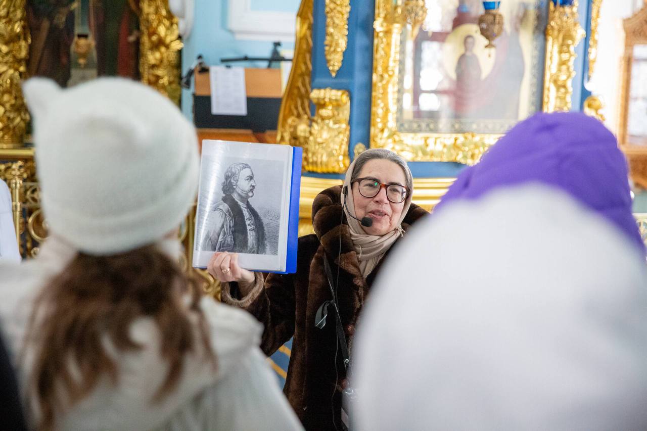 «Ребята пытались предположить, что такое хоры, и решили, что там стоят люди, исполняющие церковные песнопения. Но они узнали, что у этого архитектурного элемента было совсем другое, более значимое назначение. Хоры, располагавшиеся на втором ярусе, служили местом для царя и его семьи — это почетное положение во время богослужения», – поделилась экскурсовод Татьяна Грицышина.