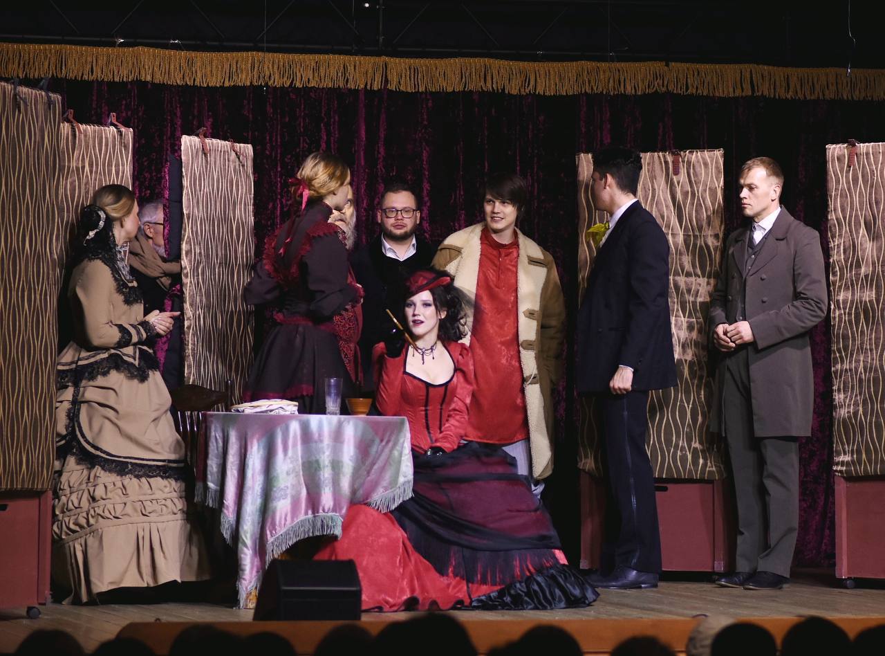 На сцене Дома культуры имени Карла Маркса показали спектакль «Идиот», поставленный по первой части одноименного романа Федора Достоевского. Режиссер постановки – заслуженный работник культуры Московской области Ольга Огонькова, руководитель народного коллектива — театра-студии «Артель» Дома культуры ЗИО.
