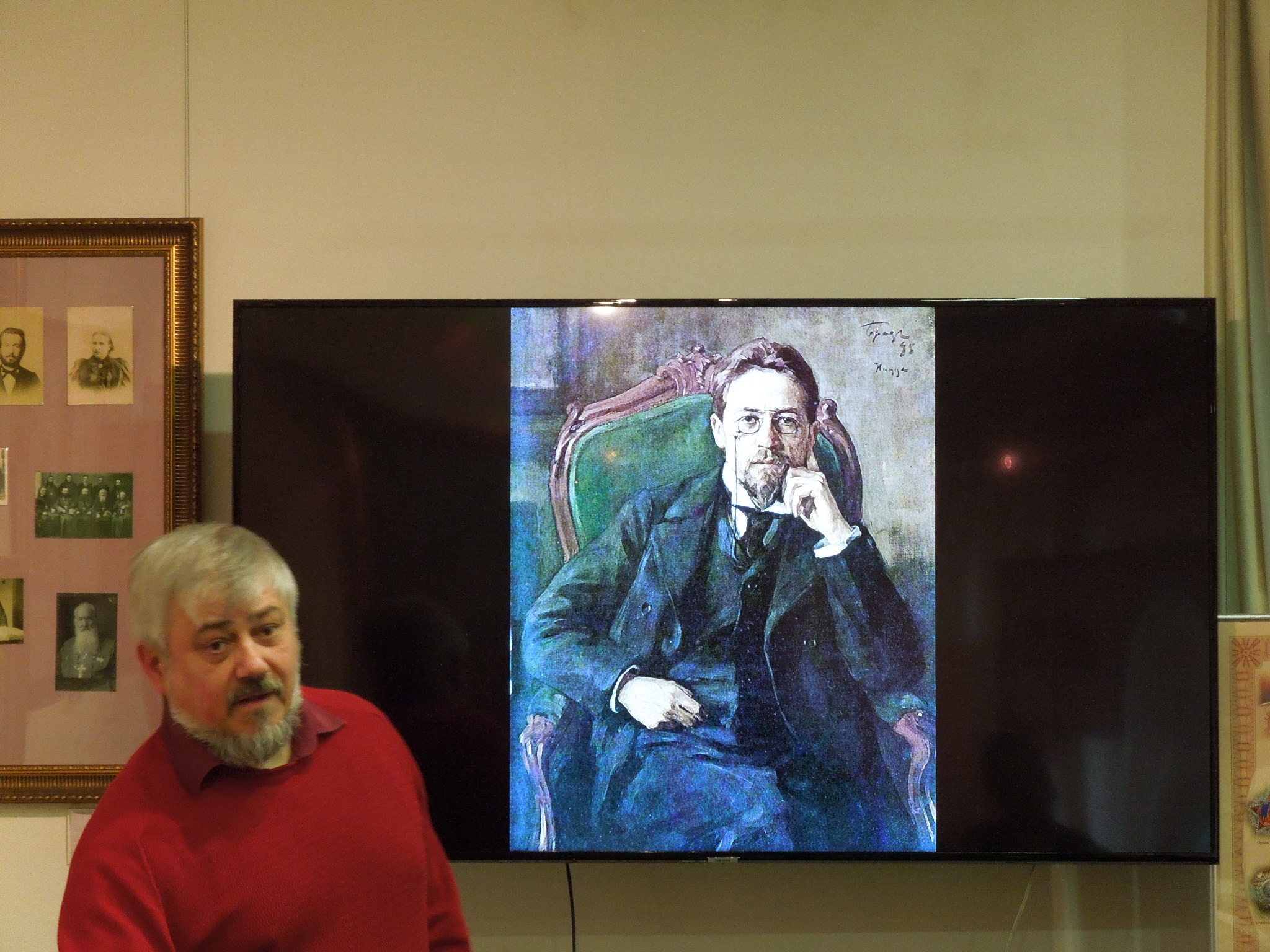 Организатором подобных встреч на протяжении многих лет является Владимир Матюшечкин. В первый февральский день в зале музея собрались около 40 человек, большинство из которых – люди старшего возраста. Они слушали музыку, звучавшую в эпоху, когда жил Чехов, и написанную по его произведениям. Открыл программу вальс-воспоминание Джемса Джойса, затем прозвучало духовное песнопение «Да исправится молитва моя» Дмитрия Бортнянского. К каждому произведению были подобраны тематические слайды.