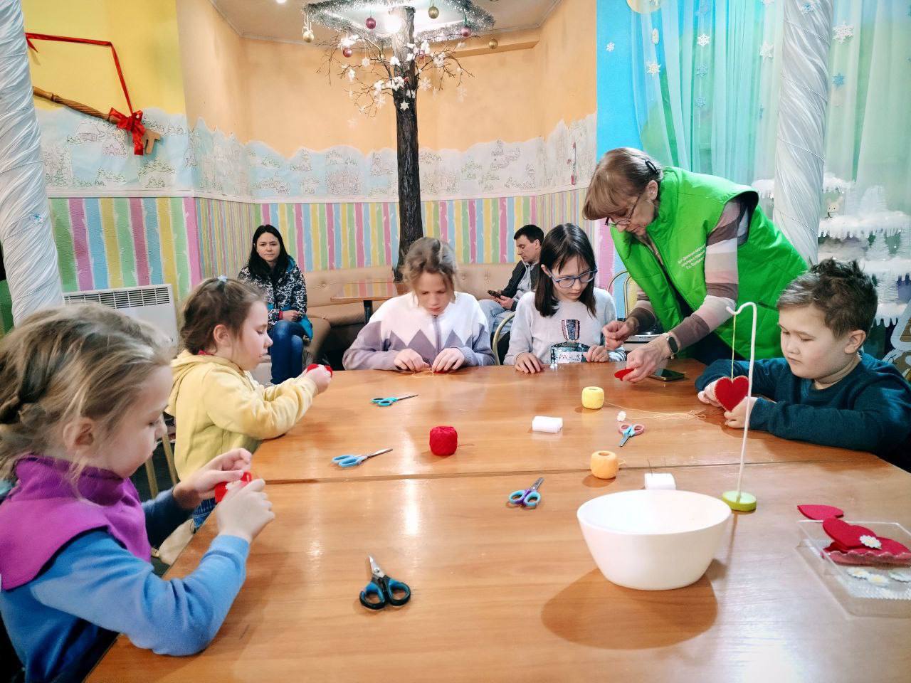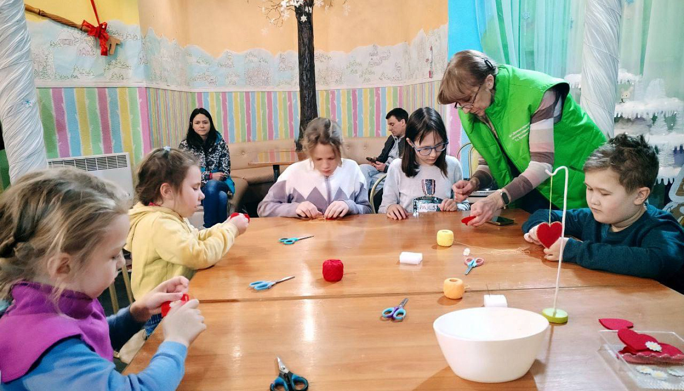 Затем культорганизатор парка Марина Твердохлеб провела для детей и их мам тематический квиз с вопросами о празднике. Под руководством Елены Тиуновой дети своими руками делали игрушки-сердца из фетра.