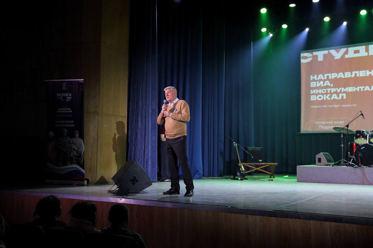 С приветственным словом к ребятам обратился первый заместитель председателя Совета депутатов городского округа Подольск Евгений Патрушев. Он подчеркнул, насколько важно, что молодежь сегодня находит возможность для самовыражения, и пожелал участникам вдохновения и уверенности на сцене.