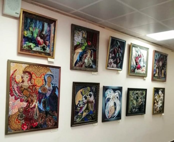 Картины художницы выполнены в необычной, сложной и трудоемкой технике «лоскутная мозаика», а изображенные образы поражают своей сказочностью и добротой. В ходе выставки присутствующие знакомятся с разнообразными тканями, наблюдают за игрой орнамента и фактурой цвета.