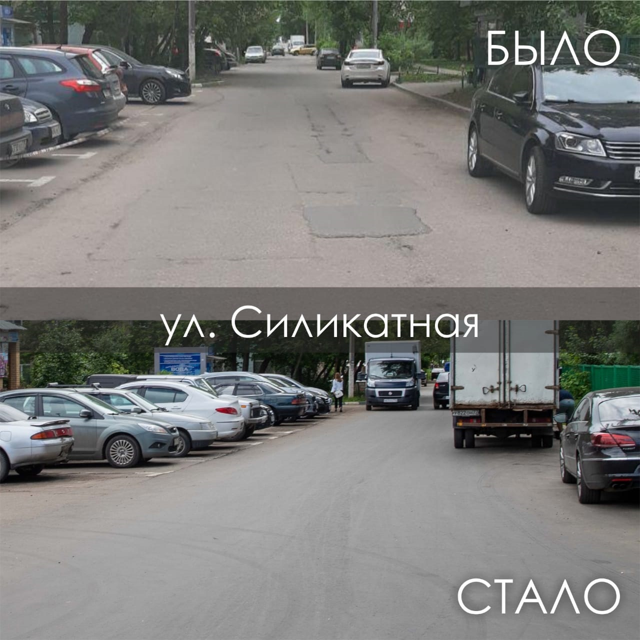 Так, новое асфальтобетонное покрытие появилось на улицах: Горная Выползово от дома № 5 к д. № 1, где прежде полностью отсутствовало дорожное покрытие, протяженность ремонта составила 66 метров; Кустарная, протяженность ремонта 182 метра; Силикатная, общая протяженность ремонта составила 262 метра, также был отремонтирован тротуар площадью 203 м2.