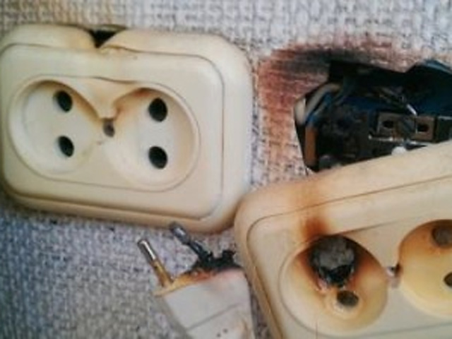 Нагрузка на выключатели значительно меньше, чем на розетки, но и они также могут гореть. В лучшем случае часть розеток в доме перестает работать, в противном — они просто горят и плавятся. То же, но не в полной мере, касается и выключателей света.