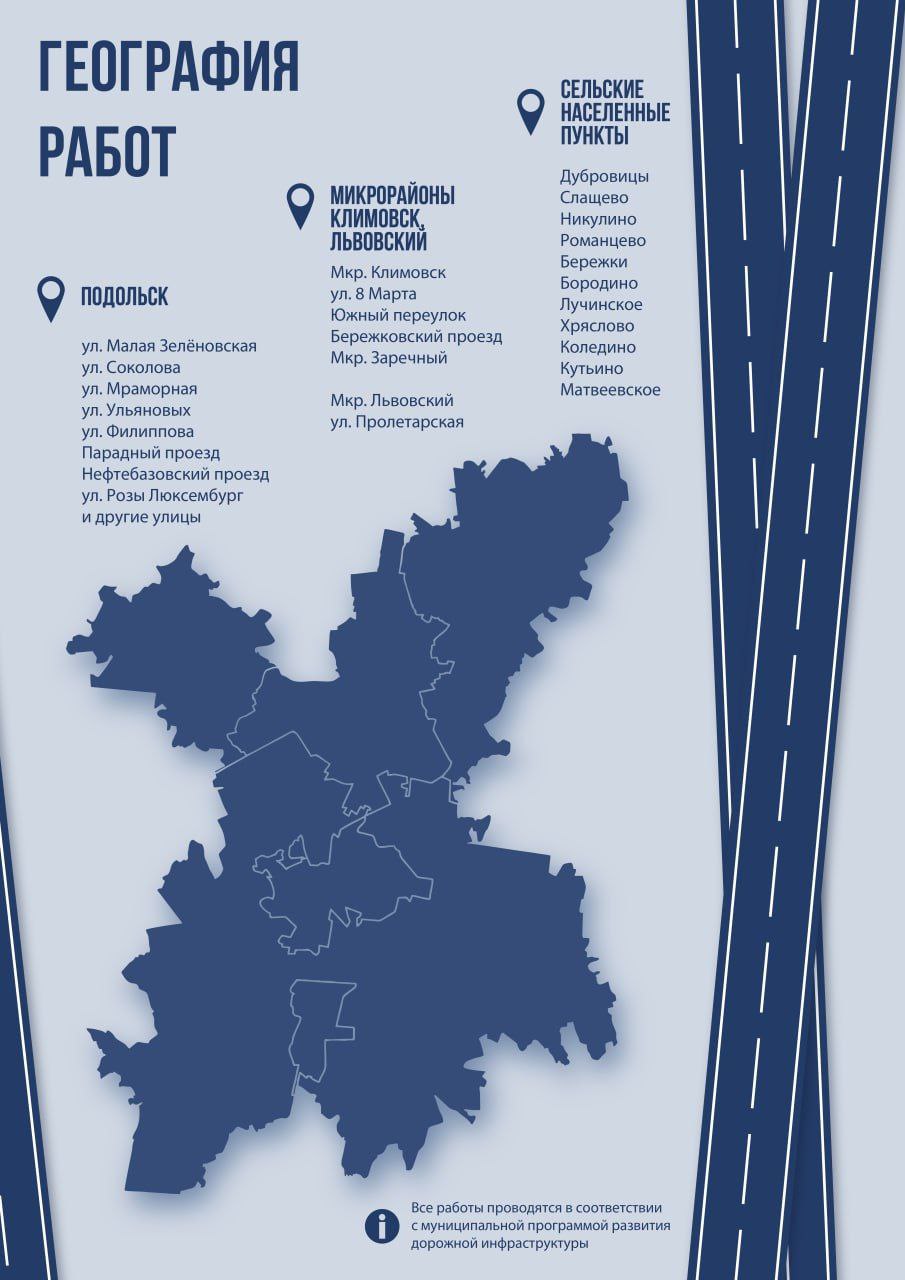 «Работы будем вести поэтапно, чтобы минимизировать неудобства для подольчан. При этом для нас принципиально важно заранее сформировать и опубликовать четкий график по каждой локации — с указанием даты начала и ориентировочных сроков завершения. Люди должны понимать, когда именно зайдет техника на их улицу и сколько продлятся ограничения движения, чтобы иметь возможность заранее спланировать свой маршрут и повседневные дела. Шаг за шагом делаем Подольск комфортнее», — подчеркнул глава городского округа Подольск Григорий Артамонов.