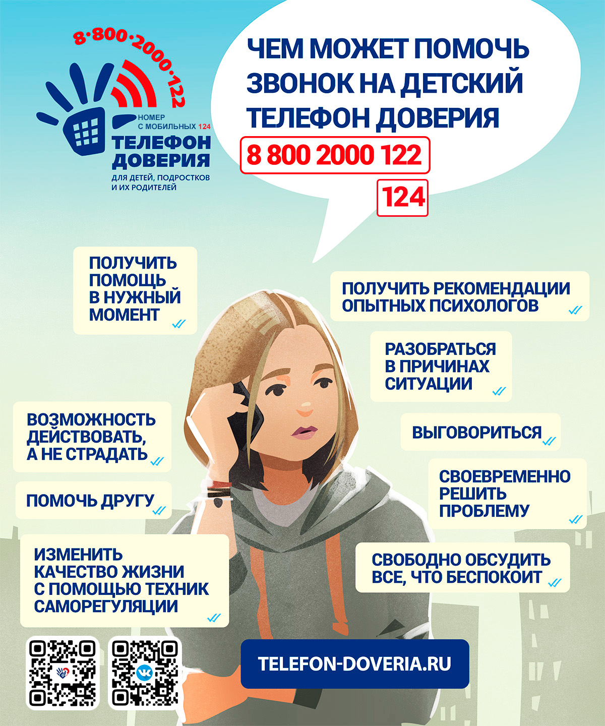Министерство социального развития Московской области в рамках соглашения об обеспечении деятельности на территории Московской области деятельности Детского телефона доверия информирует о проведении с 30 января по 6 февраля в Московской области ежегодной общероссийской Недели информирования о возможности получения экстренной круглосуточной психологической помощи по детскому телефону доверия 8-800-2000-122 и 124 (с мобильных номеров).