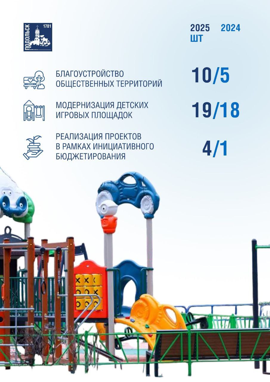В год празднования 80-летия Победы особое внимание уделили местам памяти: скверам воинов-интернационалистов и Подольских курсантов, площади Славы. Заменили плитку и брусчатку, опоры уличного освещения и малые архитектурные формы, установили новые инсталляции.