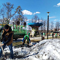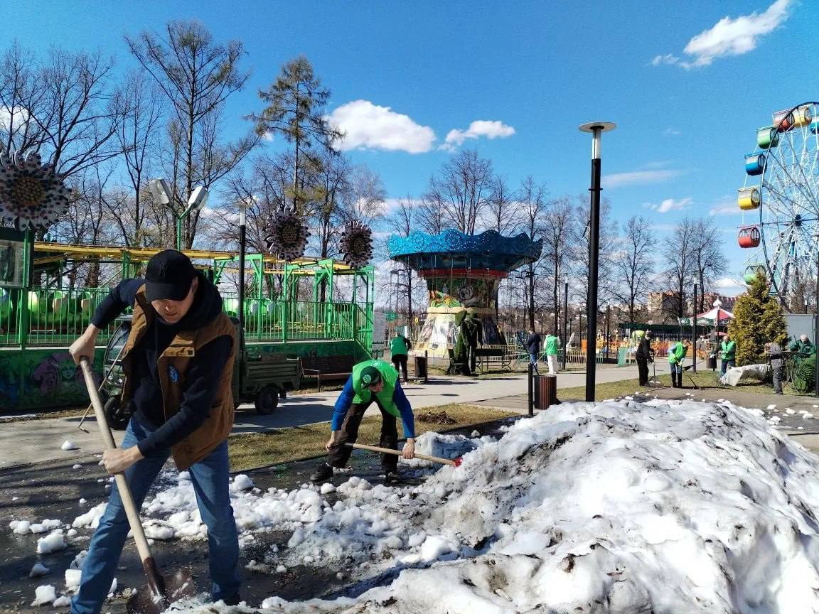 В Парке культуры и отдыха имени Виктора Талалихина сотрудники убрали остатки снега. Вдоль дорожек вырезают сухие и сломанные ветви, убирают поваленные деревья, проверяют опасные крупные ветки. Дорожки моют спецтехникой, смывая грязь и песок. Параллельно заделывают трещины, выравнивают стыки, меняют поврежденные плиты.