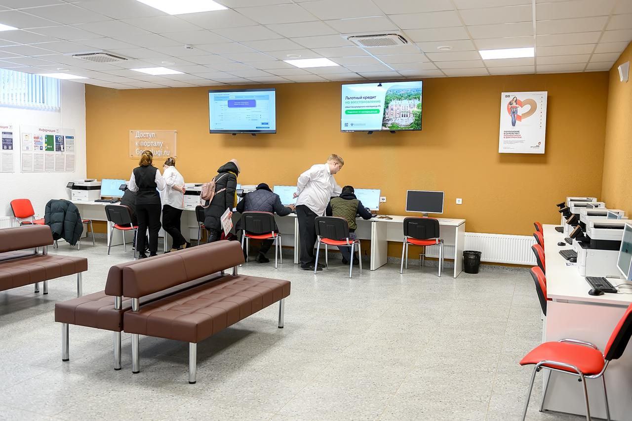 В помещении созданы комфортные условия для посетителей: 12 окон приема и выдачи документов, детский уголок, зона буккроссинга, просторный зал ожидания и уютный кафетерий. Специалисты оказывают широкий спектр услуг — от оформления паспортов до назначения социальных выплат. Здесь можно получить электронную подпись, воспользоваться окном ЗАГС, оформить доступ к онлайн-сервисам: субсидиям ЖКХ, социальным картам Московской области, льготам и пенсионным выплатам. Кроме того, оборудовано пространство с 10 рабочими местами, где консультанты помогают подать заявления в электронном виде.