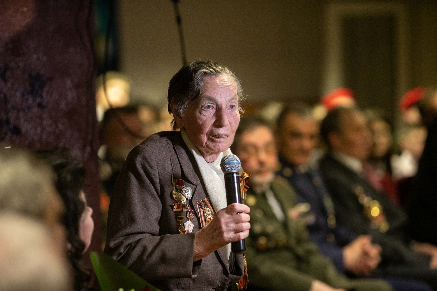 К гостям мероприятия обратилась ветеран Великой Отечественной войны Татьяна Комбарова: