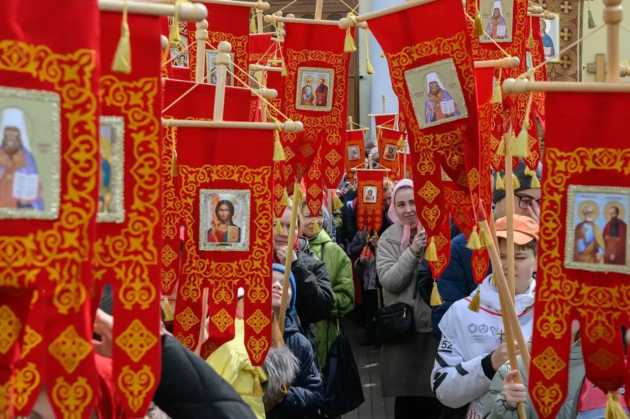 Почти 3 тысячи человек прошли от Троицкого кафедрального собора по улице Февральской, проспекту Ленина, Революционному проспекту и улице Красной, завершив торжественное шествие у стен Воскресенского храма.