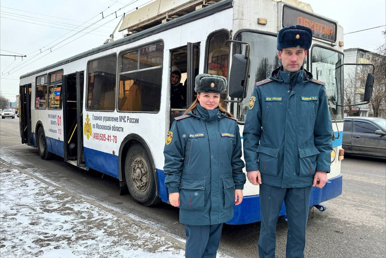 Первыми пассажирами троллейбуса стали студенты Подольского колледжа имени А. В. Никулина. Кроме того, для ребят провели экскурсию в пожарно‑спасательной части № 7.