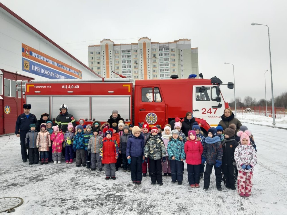 МЕДИАЦЕНТР — 19 февраля, ПОДОЛЬСК — Так, в ходе встречи начальник караула пожарной части № 247 Дмитрий Орлов рассказал ребятам об истории становления противопожарной службы, показал гараж с машинами и защитные костюмы пожарных. Экскурсия прошла в игровой форме. Дошколята побывали в роли огнеборцев и спасателей – разматывали «пожарный рукав» и тушили импровизированное возгорание, а также смогли посидеть за рулём большой машины.