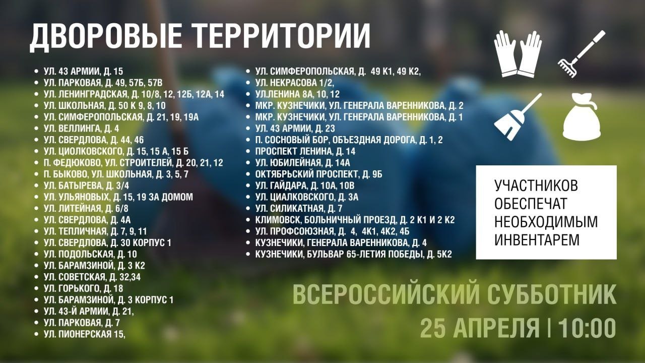 Всероссийский субботник пройдет в Подольске 25 апреля