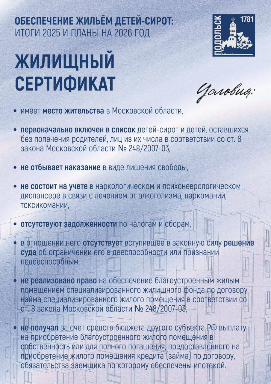 Всё больше молодых людей выбирают именно сертификат: он дает возможность самим подобрать жилье на территории Московской области и быстрее начать самостоятельную жизнь.